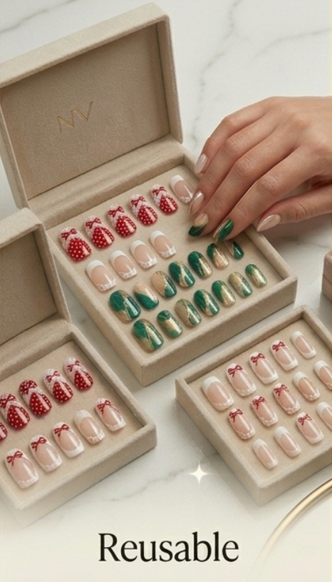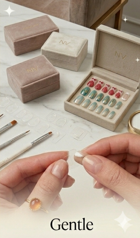 3 Press: Align the press-on nails with the cuticle and press firmly for 5-10 seconds.